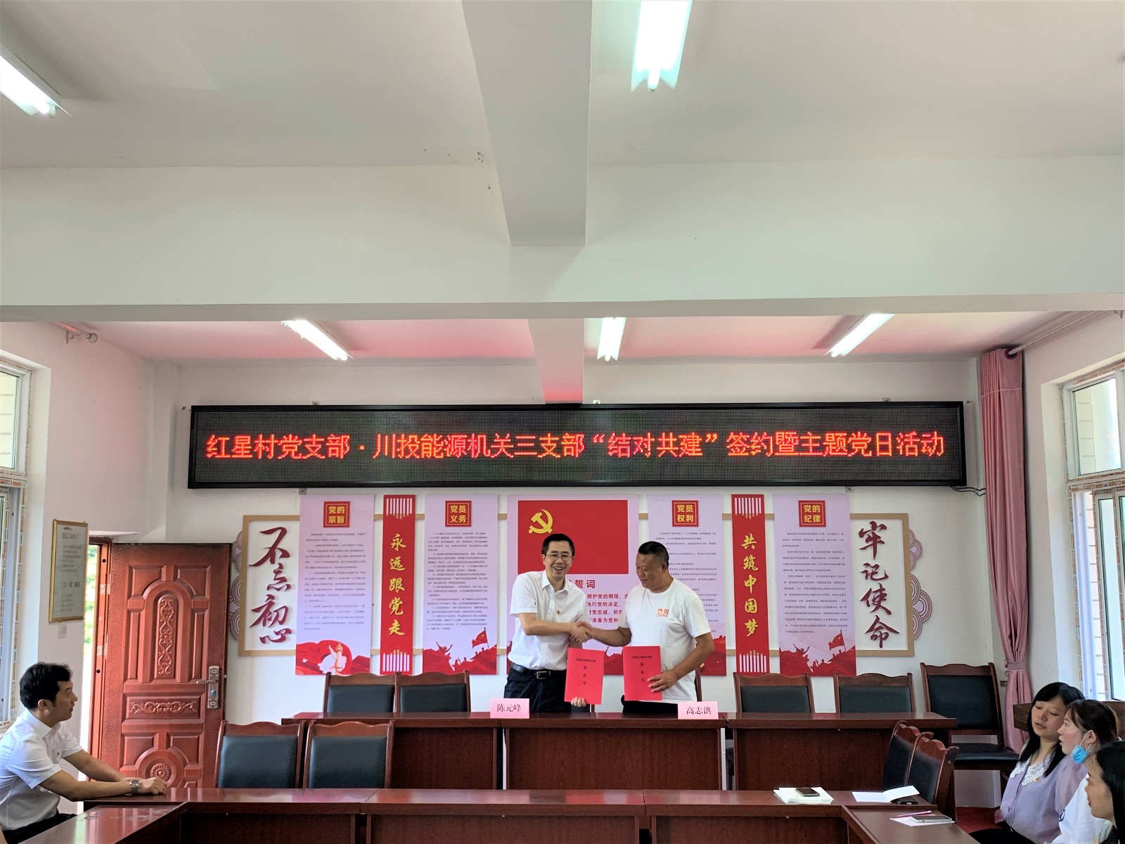 6月24日,根據川投能源黨委“企地共建”方案部署,公司機關三支部赴雅安與天全縣小河鎮紅星村黨總支開展支部“結對共建”暨主題黨日活動,川投能源黨委委會、紀委書記戴月洪,天全縣小河鎮黨委委員、組織委員王雪梅,小河鎮便民服務中心主任羅月熙等企地雙方有關領導共同見證簽約,公司機關三支部書記陳元峰和紅星村黨總支書記高志洪代表雙方簽訂《企地黨支部結對共建協議書》。