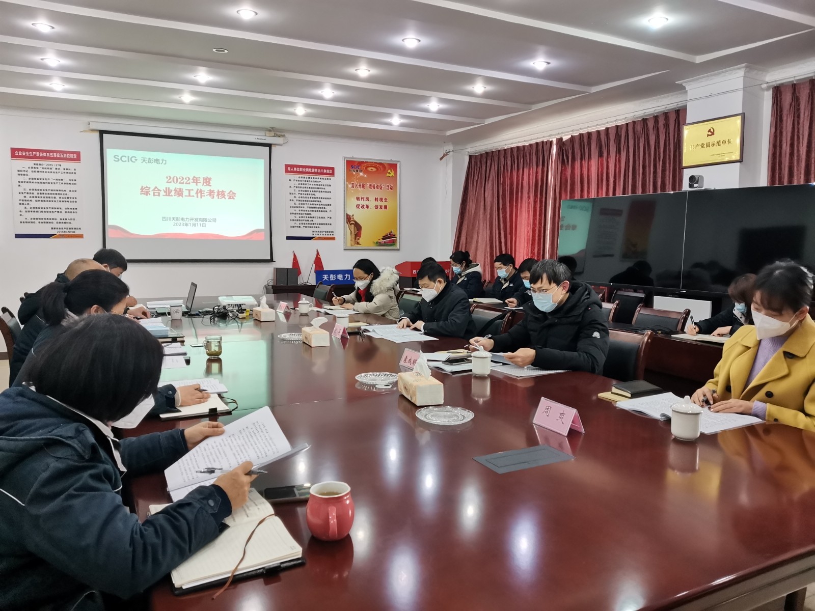 在考核過程中,各企業黨委(黨總支)書記代表企業作了述職、述責、述廉工作報告,全面匯報了全年生產經營數據、重點工作完成情況等,從中總結經驗、查找不足、分析原因、尋找解決方案,同時,對2023年的企業發展做出了規劃;班子成員分別進行了年度個人述職、述責、述廉匯報;與會人員對企業黨建工作、企業經營班子綜合素質等進行了民主測評;各考核工作小組分別與各企業部分班子成員、員工代表等進行了談心談話,并代表川投能源向各企業困難職工送上了新春的慰問祝福。