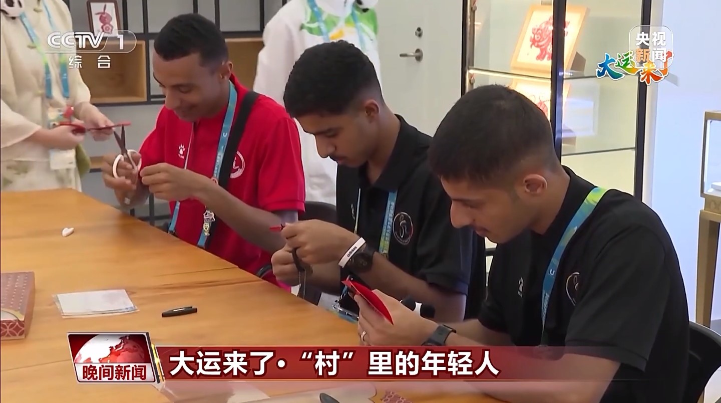 大運會期間,成都大運村里掀起一股“非遺熱”,引得各大媒體前來競相報道。互動體驗中心里,神奇的剪紙也吸引了中外運動員們紛紛前來參與體驗。
