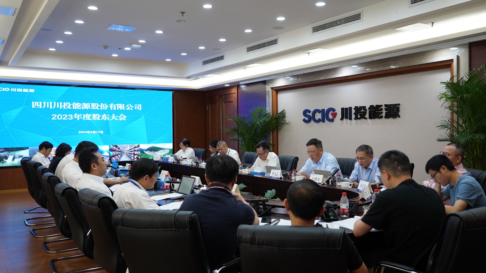 5月17日上午,川投能源采用現場和網絡方式在川投大廈1508會議室召開了2023年度股東大會,董事長吳曉曦主持會議。現場投票方式參加本次股東大會的股東或股東代表共13名,合計持有和代表股份2,401,545,576股,占公司總股份的49.27%;網絡投票方式參加本次股東大會的股東及股東代理人共47人,合計所持股份數為655,852,621股,占公司總股份的13.45%。公司5名董事出席會議,2名監事、5名高管列席會議。大成律師事務所律師列席會議進行見證,并對參會股東資格和會議召開程序等進行了審查,出具了法律意見書。
