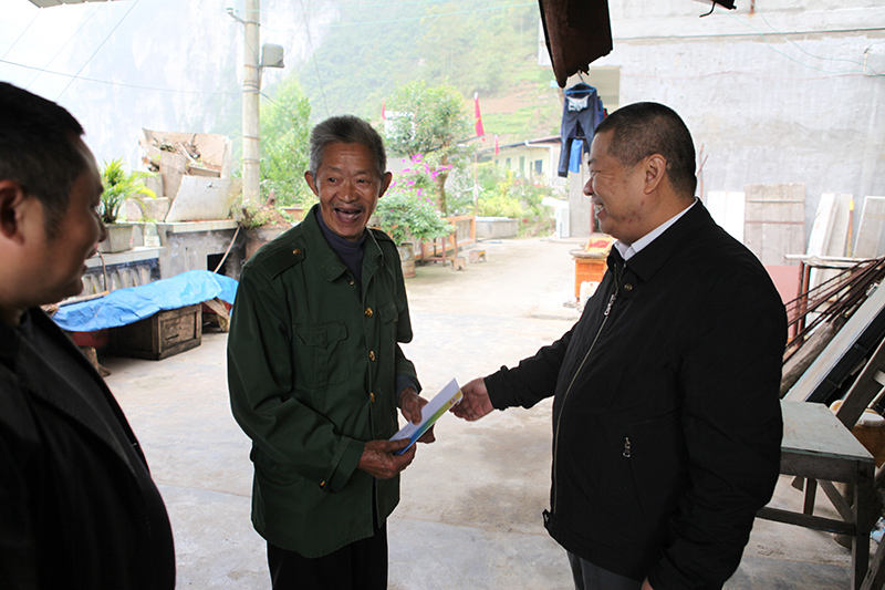 隨后,楊洪總經(jīng)理講到:今天正值中華民族傳統(tǒng)節(jié)日重陽節(jié),也是第五個(gè)國家扶貧日。川投能源黨委心系新光村的父老鄉(xiāng)親們,我代表川投能源黨委來看望大家,祝父老鄉(xiāng)親們節(jié)日安康。楊洪總經(jīng)理談到:一是扶貧攻堅(jiān)是川投能源應(yīng)盡的社會(huì)責(zé)任。川投能源作為國有控股上市公司,在發(fā)展好自身的同時(shí),一定會(huì)認(rèn)真履行社會(huì)責(zé)任,積極參與到扶貧攻堅(jiān)工作中來,全力以赴去幫助大家。二是要發(fā)展好集體經(jīng)濟(jì),把項(xiàng)目選擇好建設(shè)好。新光村要根據(jù)當(dāng)?shù)靥攸c(diǎn)結(jié)合自身優(yōu)勢發(fā)展集體經(jīng)濟(jì),選擇好、規(guī)劃好、建設(shè)好項(xiàng)目,能吸引住客人、留住客人。三是川投能源在集團(tuán)公司的統(tǒng)一部署下,將繼續(xù)不遺余力地幫助新光村脫貧,讓大家早日走向富裕。 捐贈(zèng)儀式結(jié)束后,楊洪總經(jīng)理一行馬不停蹄,來到困難村民家中,與他們聊生活、聊家常,詳細(xì)了解村民們的家庭情況、生活情況、收入情況和困難需求,并為他們送上了慰問金。村民們紛紛表示現(xiàn)在的生活逐漸好起來了,主要是精準(zhǔn)扶貧的政策好,深深體會(huì)到黨和政府的溫暖以及公司的關(guān)心幫扶。