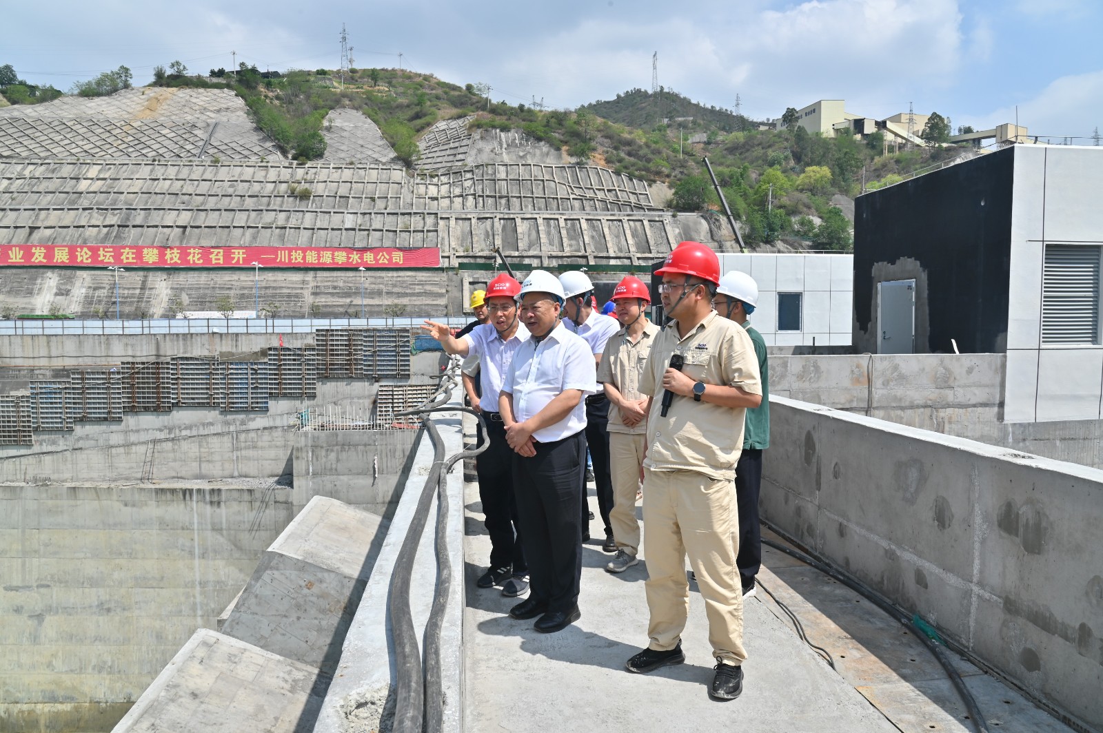6月4日至5日,川投能源黨委書記、副董事長、總經理楊洪率隊到銀江水電站工程建設現場督導檢查安全生產、電力保供及防汛工作,并看望慰問一線干部職工,川投能源副總經理、攀水電公司黨總支書記、董事長徐孝剛參加檢查。