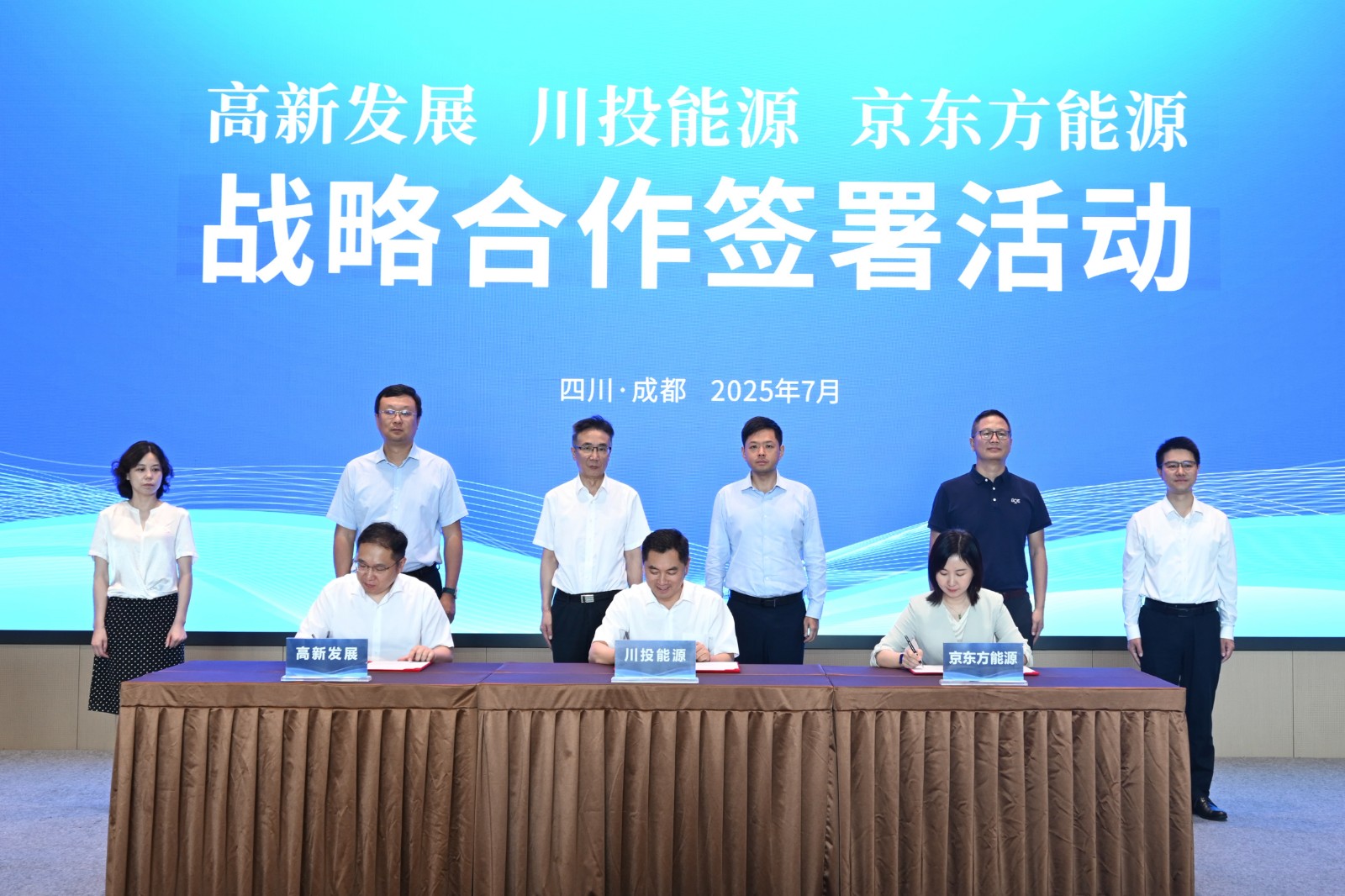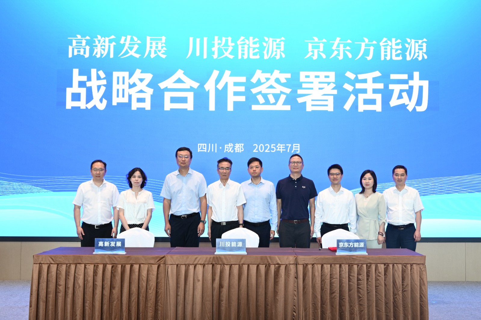 7月25日,四川川投能源股份有限公司、成都高新發(fā)展股份有限公司與京東方能源科技股份有限公司在成都高新西區(qū)IC設計產(chǎn)業(yè)園簽署戰(zhàn)略合作協(xié)議,在全國范圍共同推進新型儲能示范項目、能源互聯(lián)網(wǎng)構(gòu)建及新能源產(chǎn)業(yè)投資。成都高新區(qū)黨工委委員,管委會副主任車軸;四川能源發(fā)展集團黨委副書記、副董事長、總經(jīng)理,川投能源董事長吳曉曦;京東方科技集團副總裁,京東方能源科技黨支部書記、董事長馬亮;成都高投集團黨委副書記、總經(jīng)理,電子集團董事長,高新發(fā)展董事長周志等有關領導出席活動并見證簽約。