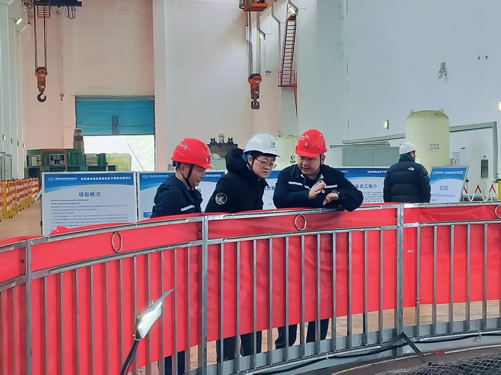 上午,檢查組首站抵達百花灘電廠,分別前往大壩、主廠房等關鍵區域,重點察看了3號機組定子更新改造現場,詳細詢問設備運行狀態及施工安全防護措施落實情況,并細致核查了電廠安全生產管理制度、操作規程、檢修方案等管理資料。電廠負責人全面匯報了當前生產運行狀況、3號機組A級檢修進度及定子技改項目實施細節。在高奉山電廠,檢查組詳細核查安全生產措施落實情況,重點詢問來水情況、水位調度策略、設備檢修進度及生產經營總體態勢,認真聽取電廠重點工作推進匯報。在槽漁灘電廠、炭素廠和硅鈣廠,檢查組實地察看有關生產經營情況。