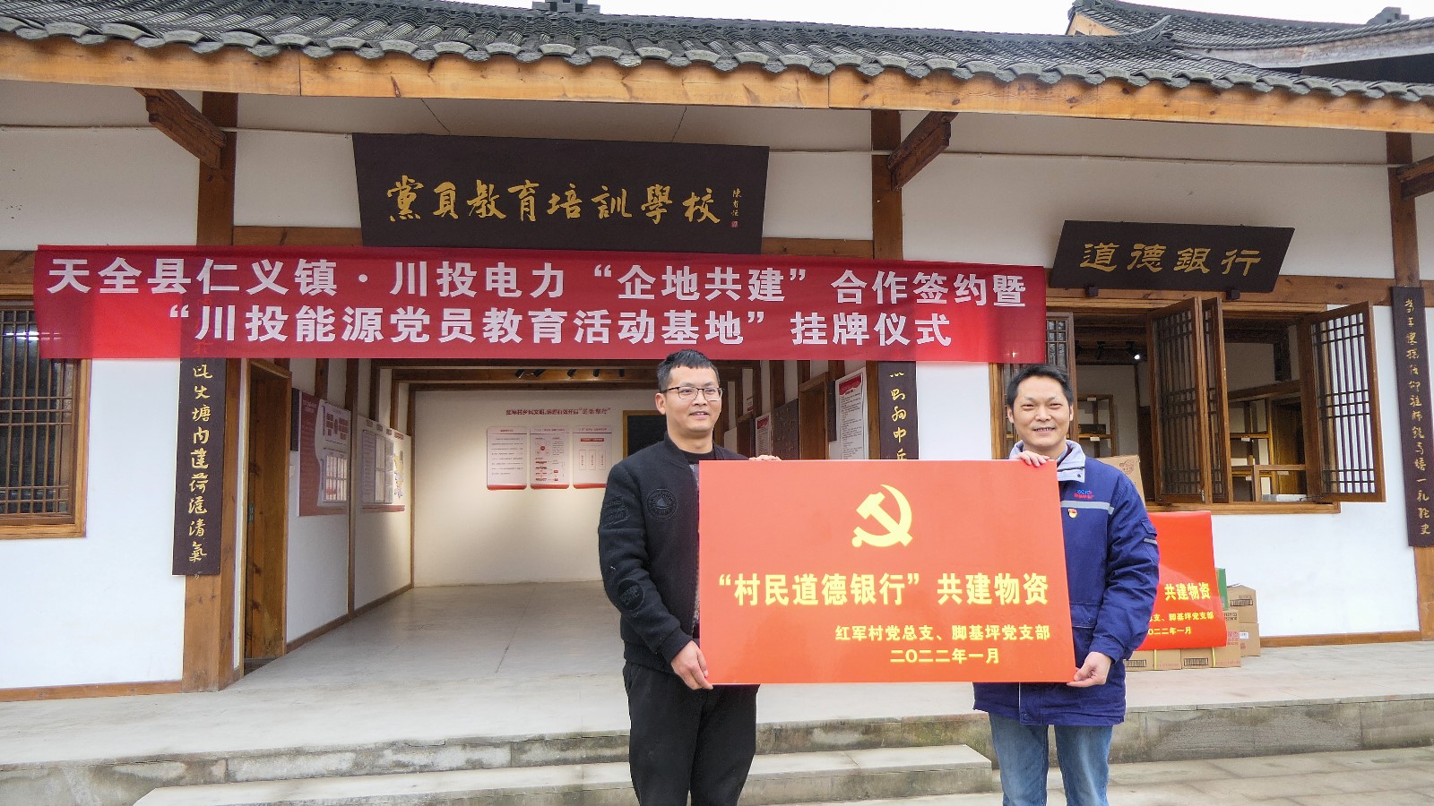 1月7日,天全縣仁義鎮和川投電力“企地共建”合作簽約暨“川投能源黨員黨性教育培訓基地”掛牌儀式在天全縣仁義鎮紅軍村舉行。會上,川投電力黨委和仁義鎮黨委,川投電力腳基坪黨支部和紅軍村黨總支分層分級簽定了《企地共建框架合作協議》,雙方領導為“川投能源黨員黨性教育培訓基地”舉行了揭牌儀式,并在紅軍村開展了 “支部結對共建、助推鄉村振興”主題黨日活動。