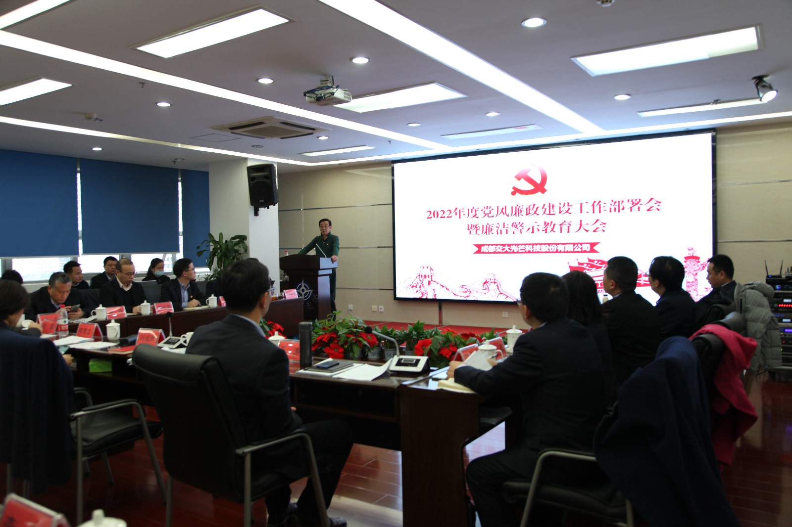 為進一步貫徹落實習近平總書記關于全面從嚴治黨重要論述,推動黨要管黨、全面從嚴治黨的政治責任層層壓緊壓實,1月25日,交大光芒召開2022年度黨風廉政建設工作部署會暨廉潔警示教育大會。交大光芒黨總支書記、總經理劉成輝主持會議并作警示談話。