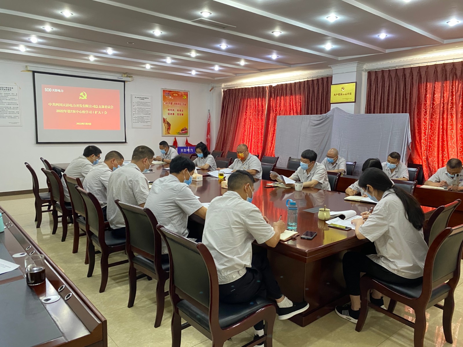 旗幟指引方向,核心領航未來。根據(jù)上級黨委統(tǒng)一部署和安排,7月4日,天彭電力召開2022年第7次中心組學習(擴大)會,公司黨總支書記、董事長、總經(jīng)理陳忠在會上對貫徹落實習近平總書記來川視察重要指示精神和省第十二次黨代會精神作專題宣講,公司黨員干部、關鍵崗位人員參加學習。
