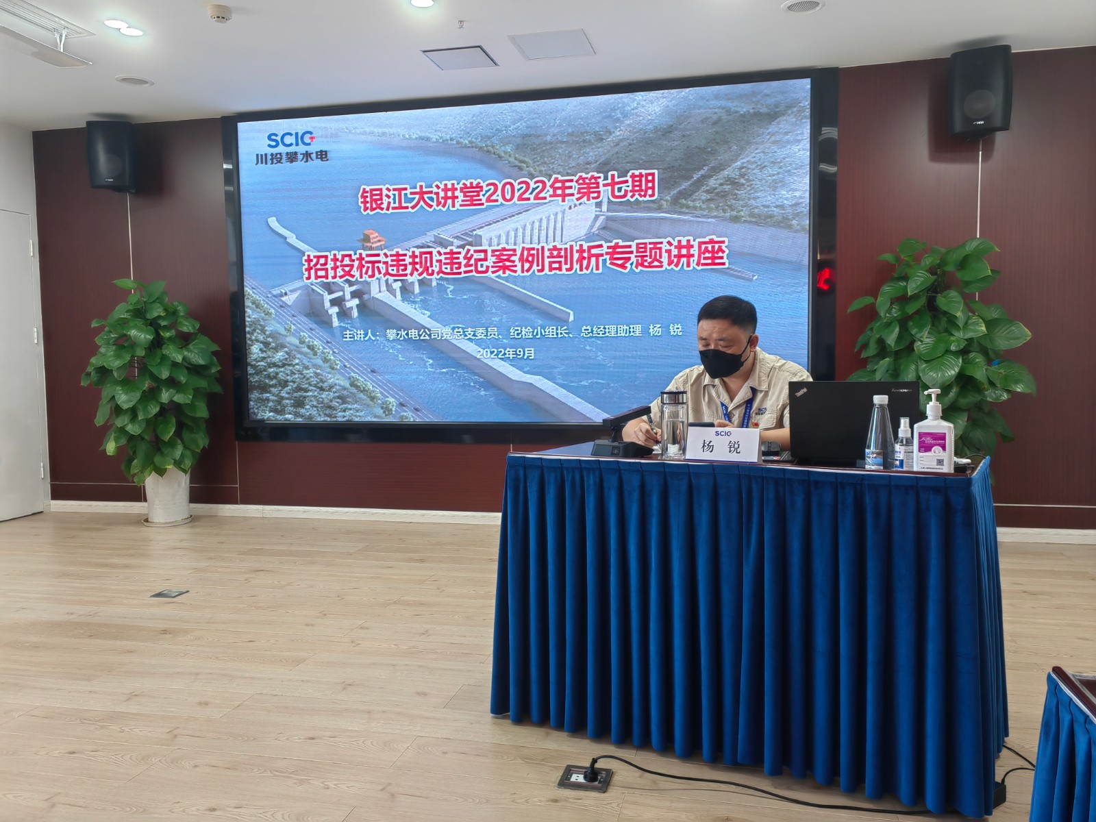 為確保“招投標領域突出問題專項治理落實陽光采購專項工作”落地落實,結合攀水電公司“銀江大講堂”活動安排,9月18日上午,攀水電公司黨總支委員、紀檢小組長、總經理助理楊銳圍繞“招投標違規違紀案例剖析”講授了一堂廉潔黨課,攀水電公司、攀新能源公司在攀領導、中干及員工30余人參加。