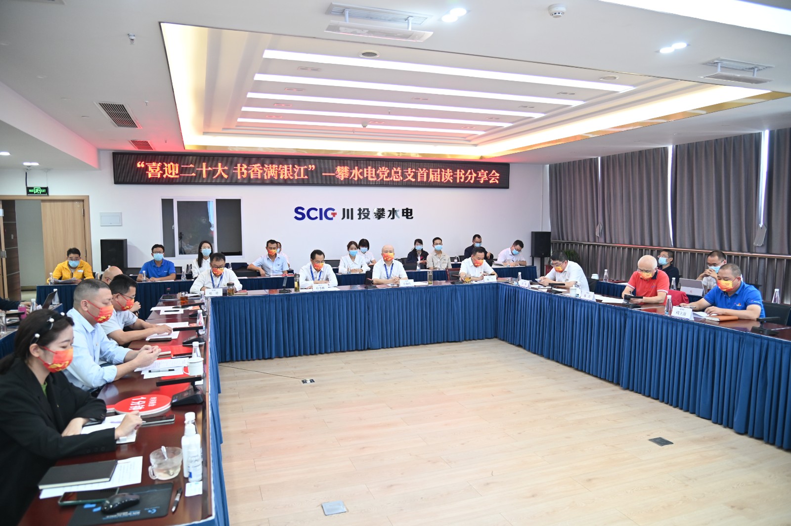 日前,為慶祝黨的二十大勝利召開,鼓勵全體黨員、職工學黨史、強信念,同心建功新時代,踔厲奮進新征程,攀水電黨總支組織開展了“喜迎二十大、書香滿銀江”讀書心得分享活動,各黨支部、參建單位黨員、職工共40人參加此次活動。川投能源副總經理、 攀水電公司黨總支書記、董事長、攀新能源公司董事長徐孝剛以及公司在攀領導、長江設計、水電五局、水電七局、二灘建設項目部等主要領導參加此次活動并擔任評委。