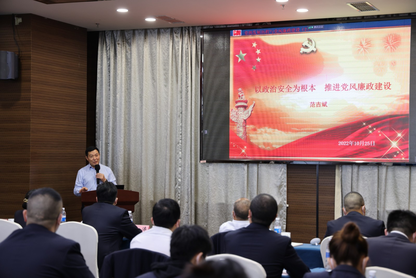 公司領(lǐng)導(dǎo)班子成員、全體黨員分別在主會場、分會場參會,會議嚴(yán)格遵守疫情防控各項規(guī)定。