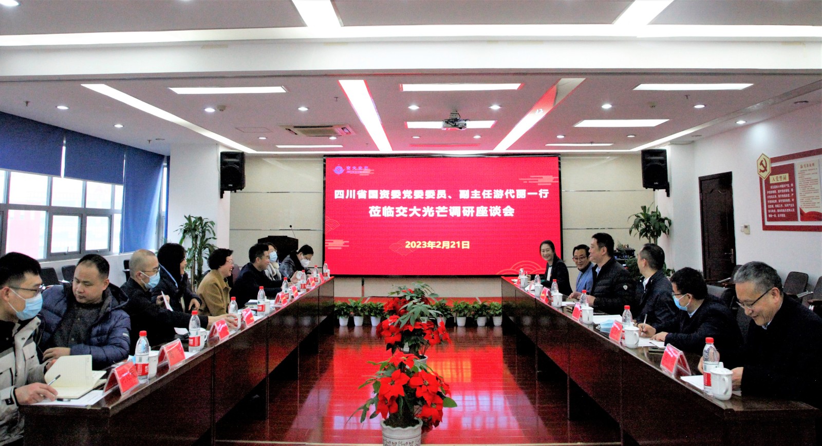 2月21日,省國資委黨委委員、副主任游代麗率隊(duì)赴交大光芒調(diào)研指導(dǎo)工作,省國資委巡視員符定平、財(cái)務(wù)監(jiān)督與評(píng)價(jià)處、監(jiān)督工作處、企業(yè)改革處一同參加調(diào)研。川投集團(tuán)財(cái)務(wù)總監(jiān)黃勁、資金財(cái)務(wù)部部長葉光明隨同調(diào)研。交大光芒黨總支書記、總經(jīng)理劉成輝以及經(jīng)營班子成員、黨總支委員參加調(diào)研座談會(huì)。