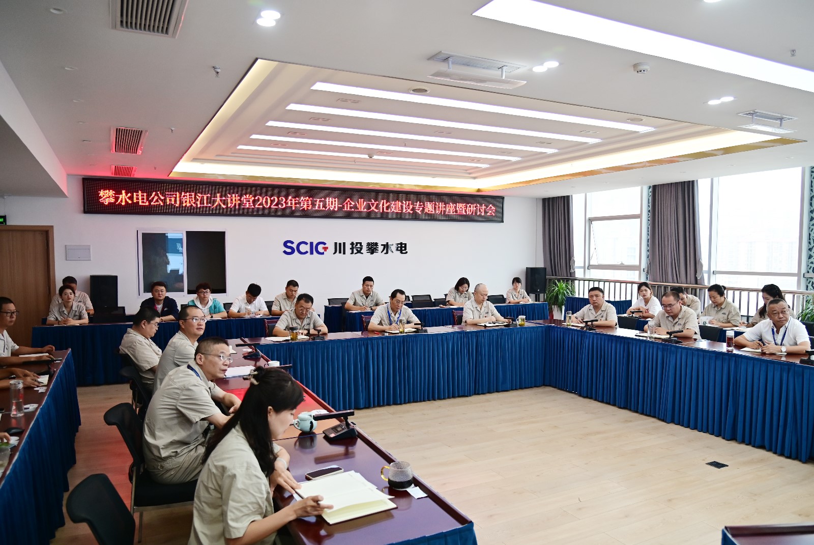 為推動(dòng)學(xué)習(xí)貫徹習(xí)近平新時(shí)代中國特色社會(huì)主義思想主題教育走深走實(shí),全面落實(shí)黨的二十大精神,堅(jiān)定文化自信,不斷適應(yīng)新時(shí)代國企文化建設(shè)的新形勢、新任務(wù)和新要求,充分發(fā)揮企業(yè)文化在推進(jìn)企業(yè)高質(zhì)量發(fā)展中的積極作用,7月30日,攀水電公司組織開展了2023年第五期銀江大講堂——企業(yè)文化建設(shè)專題講座暨研討會(huì),會(huì)議邀請(qǐng)到了四川省市場監(jiān)督管理學(xué)會(huì)理事、攀枝花學(xué)院經(jīng)濟(jì)與管理學(xué)院副教授顧福珍授課。川投能源副總經(jīng)理、公司黨總支書記、董事長、企業(yè)文化建設(shè)領(lǐng)導(dǎo)小組組長徐孝剛、公司在攀領(lǐng)導(dǎo)及全體員工共計(jì)40余人參加會(huì)議。