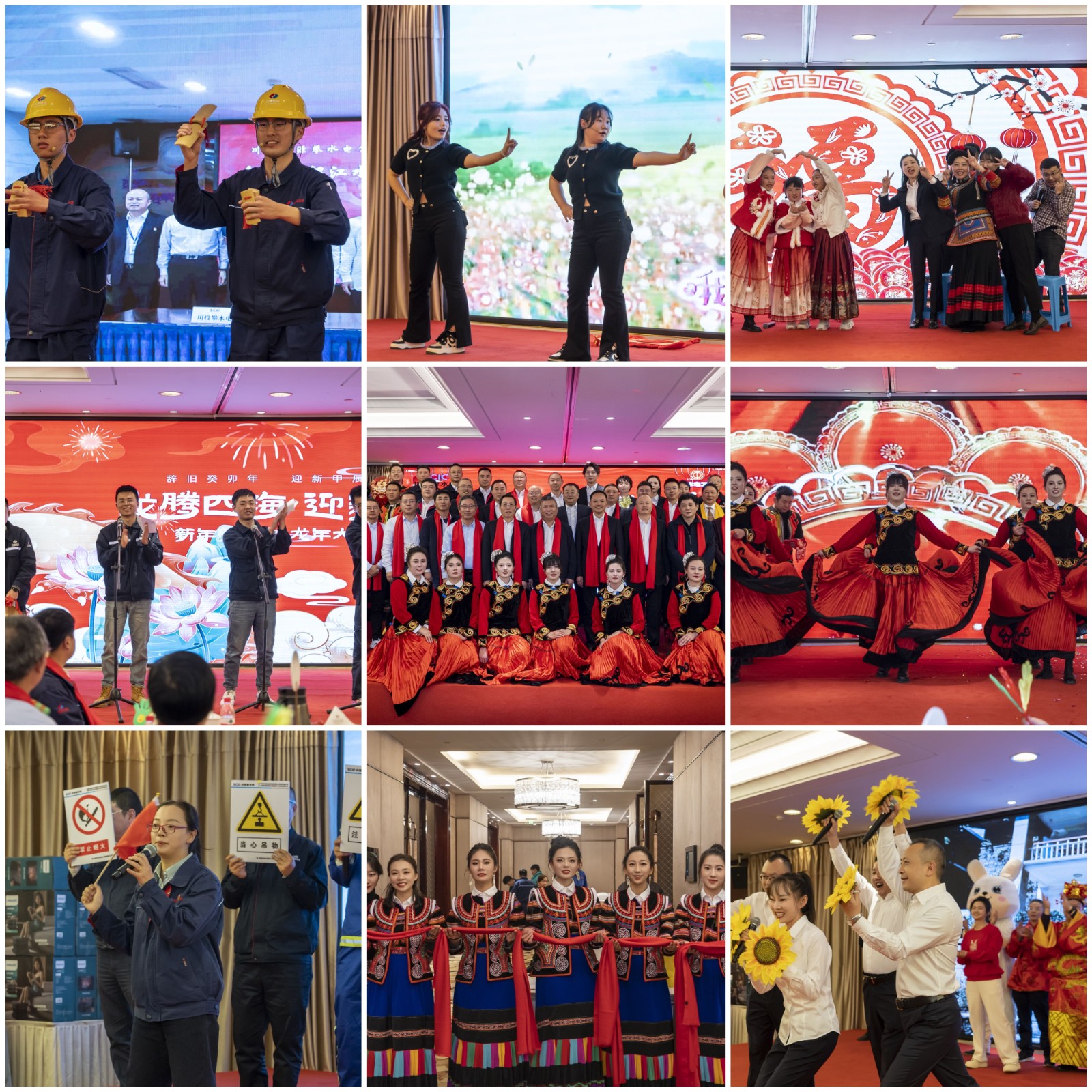 座談會后,攀水電公司組織了“銀江之春”職工文藝匯演,本次文藝匯演所有節(jié)目均由公司各部門和各參建單位員工利用休息時間自編自導自演,大家以歌舞、情景劇、快板等形式共12個節(jié)目,展現(xiàn)了大家在銀江水電站建設中的工作日常和酸甜苦辣。來自水電七局項目部的三句半“賀新春”,說出了電站砂石骨料系統(tǒng)質(zhì)量管控的種種細節(jié);計劃合同部員工們一改往日的嚴肅,以一首嘻哈版“銀江DISCO”講述了招標和合同管理中的艱辛與困難;各參建單位安全員共同參演的“安全記心間”提醒大家時刻不能忘安全;水電五局項目部快板“禮贊銀江水電站”表達了攻堅克難筑大壩的信心和決心;黨群工作部脫口秀“十大心動瞬間發(fā)布會”以沙畫的方式帶領大家重溫了川投能源職工運動會中的感人故事;活動中,公司還與攀枝花市移動公司簽訂了戰(zhàn)略合作協(xié)議,攜手將銀江水電站打造成“5G+智慧電廠”, 由雙方領導帶領的大合唱“龍的傳人”更是催人奮進。