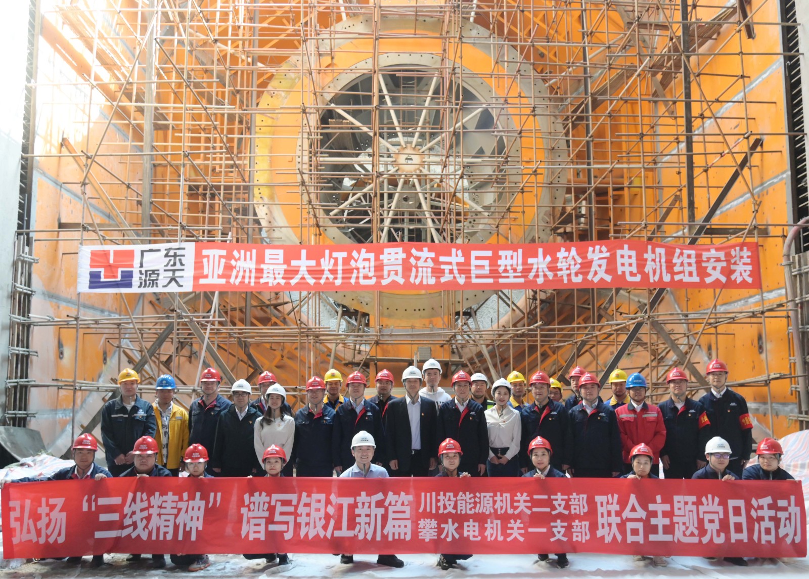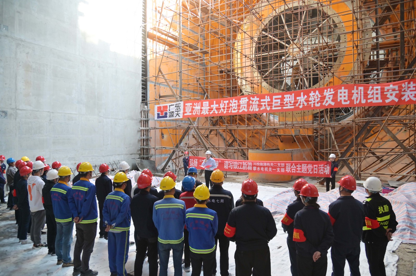 在銀江水電站亞洲最大燈泡貫流式巨型水輪發(fā)電機(jī)組安裝現(xiàn)場,川投能源機(jī)關(guān)二支部書記李睿講授了工地微黨課《承諾》,與大家一起重溫銀江水電站建設(shè)過程中的感人故事。活動中,徐孝剛用通俗易懂的語言,為現(xiàn)場同志介紹了銀江水電站的建設(shè)特點、施工情況和下一步工程建設(shè)計劃,并號召全體黨員和團(tuán)員青年要圍繞“保一爭二”提前發(fā)電重要目標(biāo),團(tuán)結(jié)一心、勇挑重?fù)?dān)、善作善成。