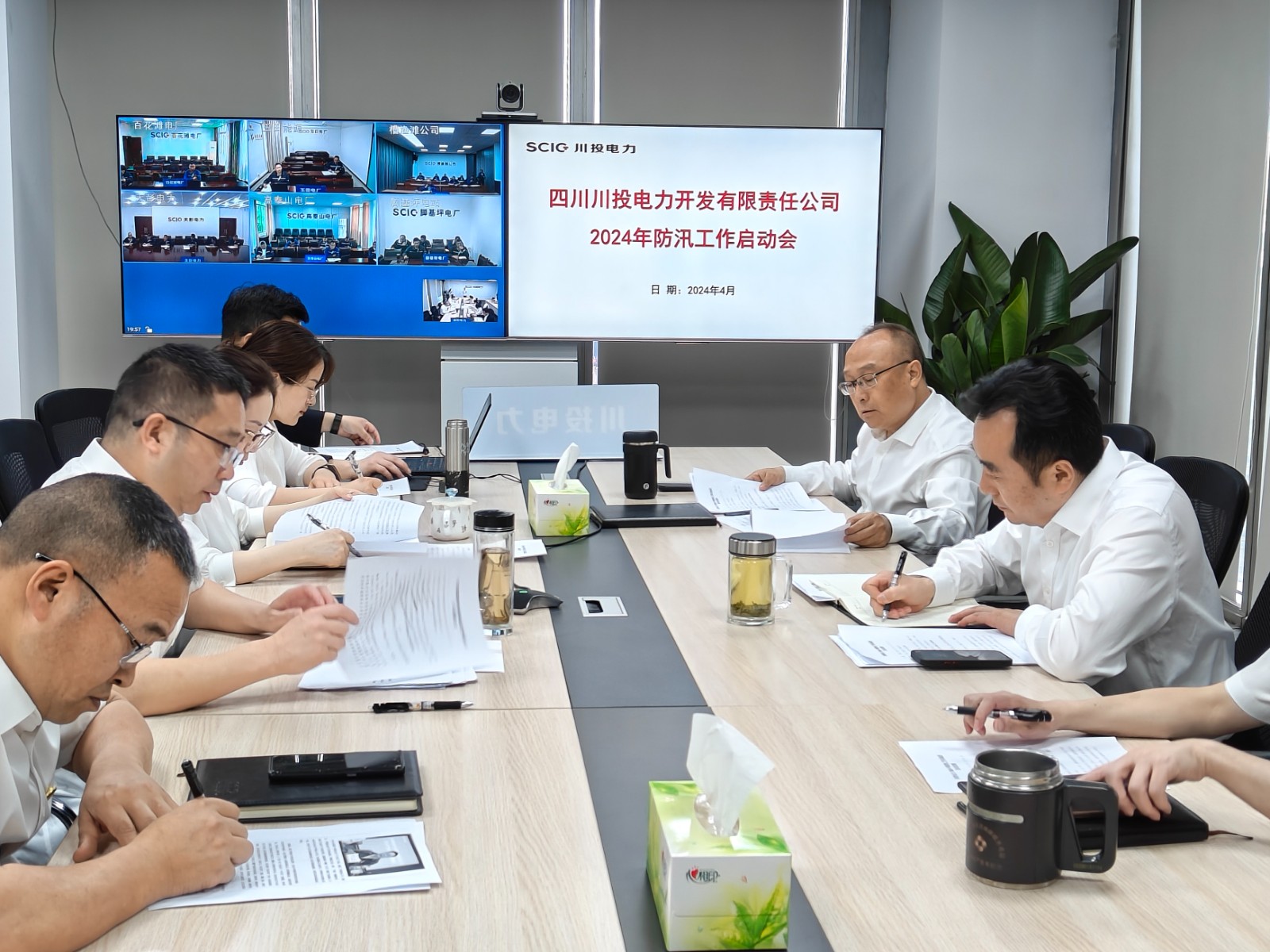 2024年4月23日上午,川投電力召開(kāi)2024年防汛工作啟動(dòng)會(huì),公司黨委書(shū)記、董事長(zhǎng)、防汛領(lǐng)導(dǎo)小組組長(zhǎng)楊濤,黨委副書(shū)記、總經(jīng)理、防汛領(lǐng)導(dǎo)小組常務(wù)副組長(zhǎng)蔡承德出席并講話,副總經(jīng)理、防汛領(lǐng)導(dǎo)小組副組長(zhǎng)、防汛辦公室主任王偉主持會(huì)議。