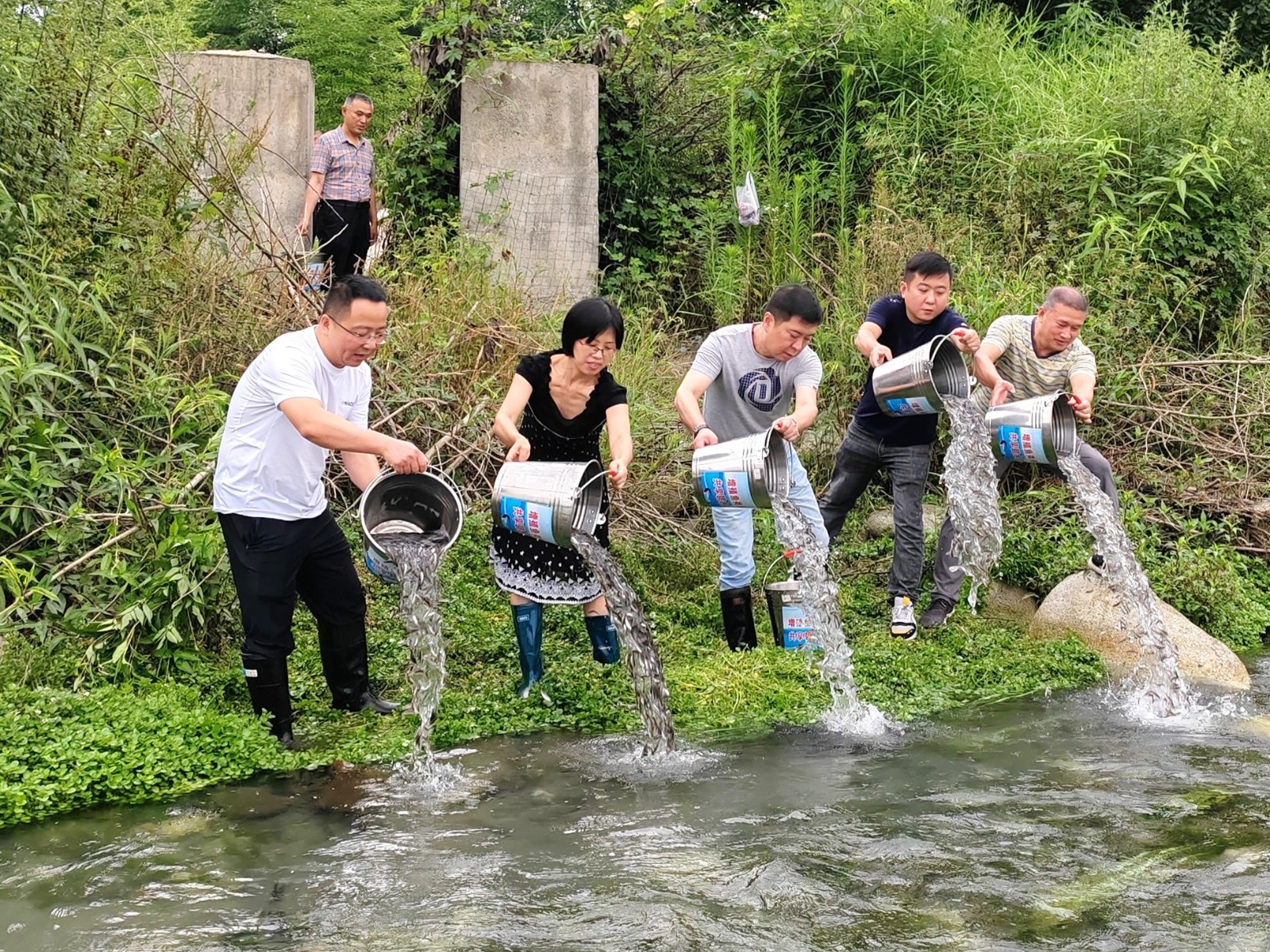 上午10時,位于通濟驛站附近的湔江河段魚類增殖放流投放點橫幅飄揚、人潮涌動,在彭州市農業農村局、通濟鎮政府等主管部門人員的現場指導和周邊村鎮群眾代表的共同見證下,公司人員現場放流了珍貴的齊口裂腹魚苗共計20000尾,將新的生機和活力注入碧波蕩漾的河流。