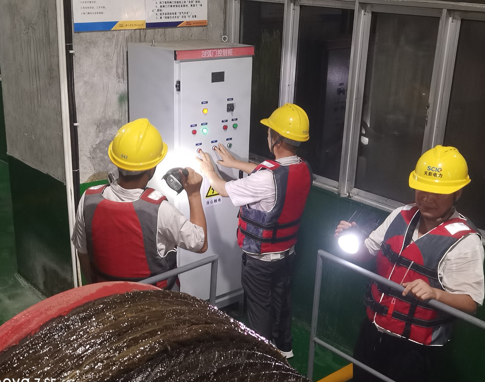 汛情就是命令,防汛就是責(zé)任,對(duì)于天彭電力人來說,這注定是個(gè)不眠之夜。公司領(lǐng)導(dǎo)現(xiàn)場指揮,及時(shí)處置各類突發(fā)情況,值班人員兵分三路、各司其職,一路駐守控制室,密切關(guān)注雨情、水情變化,作好信息收集和傳達(dá);一路前往防汛重點(diǎn)部位進(jìn)行巡視檢查,確保設(shè)備設(shè)施運(yùn)行正常;一路做好應(yīng)急搶險(xiǎn)準(zhǔn)備。