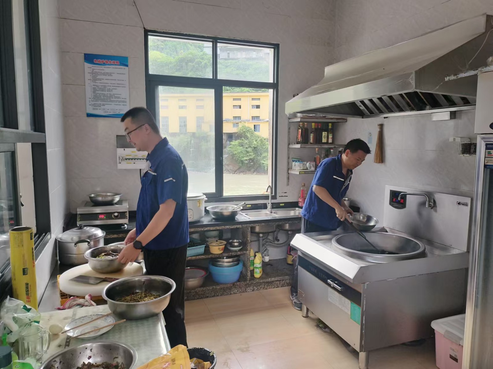 由于道路中斷,食堂工作人員無(wú)法抵達(dá)電廠,解決值班人員的三餐成了難題。于是,在廠員工就自己動(dòng)手,充分利用有限的時(shí)間和食材,相互協(xié)同,在廚房烹飪出美味可口的飯菜,既解決了溫飽,更溫暖了人心。這期間,電廠周邊的企地共建企業(yè)和政府單位也給予了關(guān)心、幫助和支持。
