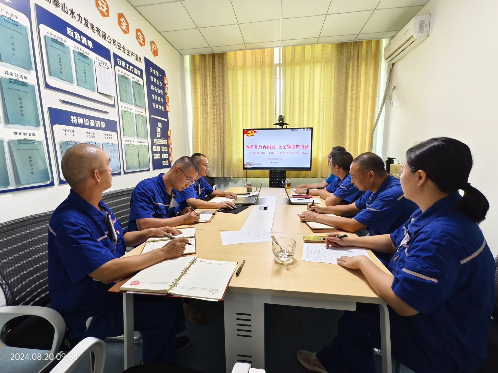 8月20日,高奉山黨支部以“改革開放再出發,立足崗位做貢獻”為主題開展黨日活動,集中學習黨的二十屆三中全會精神,支部書記、廠長王橋主持并帶頭談認識體會。