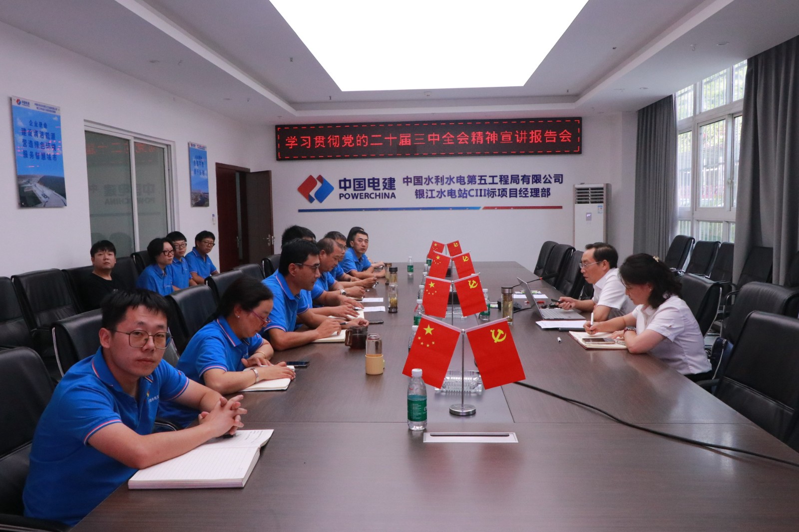 為深入學習宣傳貫徹黨的二十屆三中全會精神,按照川投能源黨委的部署和攀水電公司黨總支的安排,近日,川投能源副總經理、公司黨總支書記、董事長徐孝剛到聯系指導支部水電五局銀江項目黨支部進行黨的二十屆三中全會精神專題宣講。水電五局銀江項目黨支部全體黨員、入黨積極分子、青年職工代表共計15人參加此次宣講報告會。