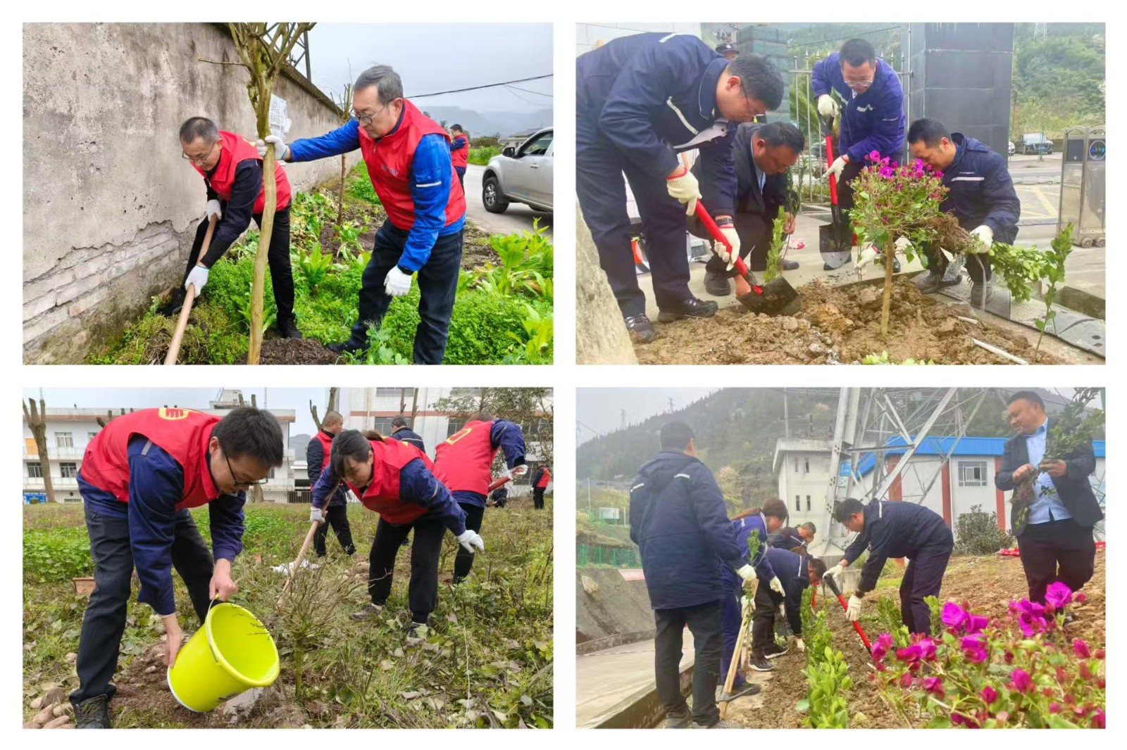 活動當天,高奉山電廠、腳基坪電廠全體員工積極參與,大家分工協作,干勁十足。活動現場,員工們揮鍬鏟土、扶苗填坑、澆水灌溉,每一道工序都認真細致,經過一上午的辛勤勞動,電廠周邊的空地上種下了一排排整齊的樹苗,為廠區增添了一片新綠。同時,槽漁灘公司黨員服務群眾先鋒隊在青衣江江畔開展垃圾清理志愿服務。