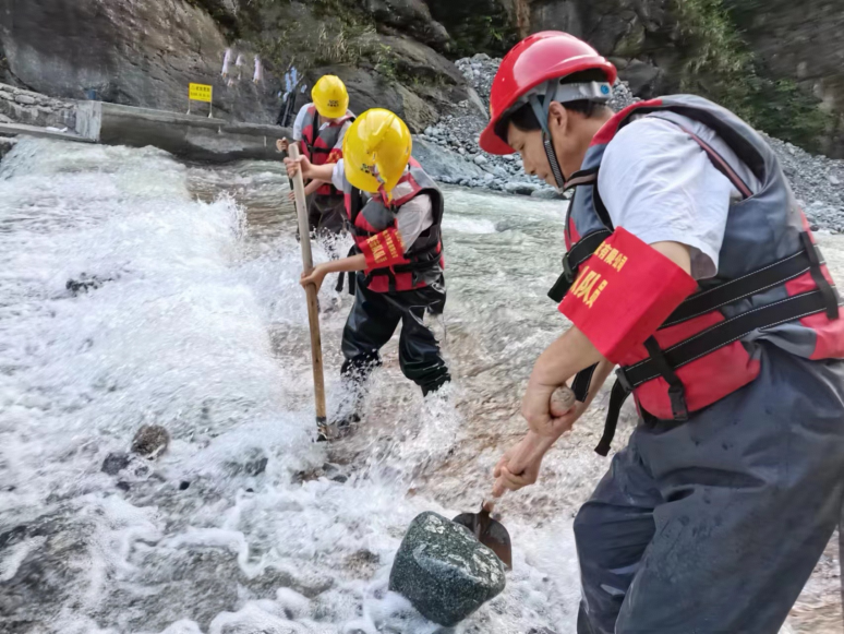 以黨員和骨干員工組成的天彭電力“星光”黨員先鋒隊(duì),詮釋著責(zé)任和傳承。2022年9月1日,回龍溝上游爆發(fā)山洪那晚,沙金車(chē)間取水樞紐——底格欄柵壩整個(gè)壩面三分之一的鋼結(jié)構(gòu)、部分混凝土被破壞,二分之一壩面嚴(yán)重淤積。險(xiǎn)情導(dǎo)致沙金車(chē)間引水全部中斷,公司整個(gè)發(fā)電來(lái)水量減少三分之一,不僅影響機(jī)組發(fā)電,彭州及周邊40萬(wàn)人飲用水安全也將亮起紅燈。秉承“搶險(xiǎn)不冒險(xiǎn)”的原則,在強(qiáng)降雨停后的第一時(shí)間,沙金車(chē)間迅速出動(dòng)搶修人員,先鋒隊(duì)隊(duì)員們帶頭沖鋒在前,展開(kāi)了一場(chǎng)保發(fā)保供保民生的搶險(xiǎn)“攻堅(jiān)戰(zhàn)”。在車(chē)間主任周繼良的帶領(lǐng)下,大家火速集結(jié),緊急投入搶險(xiǎn)工作。僅用時(shí)23小時(shí)、比原計(jì)劃提前2天,成功搶通供水生命線。