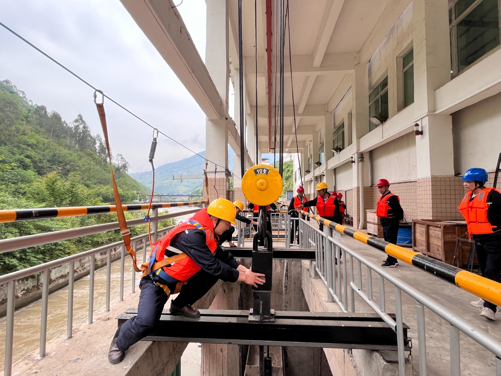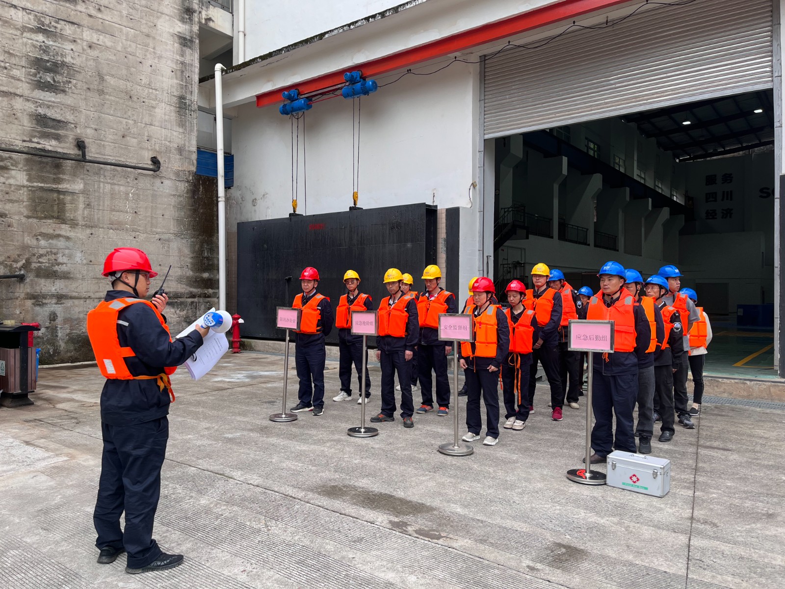 演練前,電廠組織全員學(xué)習(xí)了《玉田電廠2025年防洪度汛應(yīng)急演練方案》,演練于14時(shí)30分正式開始,模擬玉田電廠三臺(tái)機(jī)組帶負(fù)荷93MW,越西縣氣象部門發(fā)布暴雨橙色預(yù)警,越西縣降暴雨已持續(xù)數(shù)小時(shí)。上游宏陽電站和團(tuán)結(jié)電站準(zhǔn)備停機(jī)避峰已開閘放水,尼日河道來水兇猛,預(yù)計(jì)來水流量達(dá)到800m3/s,閘首水位1274.5m的緊急情況。當(dāng)值值長接到汛情后,迅速匯報(bào)防汛辦負(fù)責(zé)人。防汛辦負(fù)責(zé)人要求控制好水位,確保人員安全,并準(zhǔn)備停機(jī)避峰。隨后,險(xiǎn)情立即上報(bào)至防汛總指揮,總指揮接到險(xiǎn)情后,立即啟動(dòng)《玉田電廠防汛搶險(xiǎn)應(yīng)急預(yù)案》,成立現(xiàn)場(chǎng)指揮部,統(tǒng)籌調(diào)度防汛辦公室、安全督導(dǎo)組、應(yīng)急搶險(xiǎn)組、應(yīng)急后勤組等多支隊(duì)伍。大壩值班人員接到通知后拉響防洪警報(bào),開啟沖砂閘和泄洪閘緩慢放水,控制水位,同時(shí)做好防汛物資準(zhǔn)備,并啟動(dòng)柴油發(fā)電機(jī)。當(dāng)班值長向調(diào)度申請(qǐng)停機(jī)避峰,并及時(shí)向相關(guān)部門及下游電站通報(bào)汛情。三臺(tái)機(jī)組停機(jī)后,逐步開啟沖砂閘和泄洪閘進(jìn)行泄洪。應(yīng)急搶險(xiǎn)組完成了廠房柴油發(fā)電機(jī)啟動(dòng)試驗(yàn),落下機(jī)組尾水閘門,關(guān)閉主廠房防洪門并堆砌防洪沙袋。運(yùn)行值班人員加強(qiáng)設(shè)備和邊坡巡查。后勤組負(fù)責(zé)人員疏散和后勤保障工作。各小組協(xié)同作戰(zhàn),演練于15時(shí)49分圓滿結(jié)束。