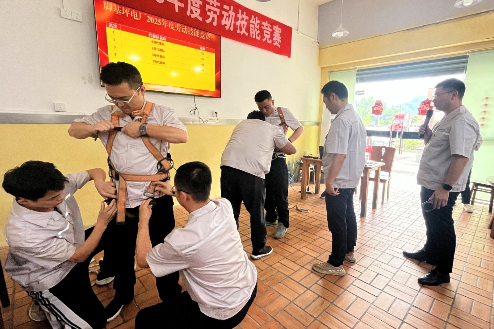 本次競賽內(nèi)容涵蓋理論知識(shí)及實(shí)操技能等多個(gè)方面,來自發(fā)電部、維護(hù)部、綜合部及安環(huán)部的12名員工組成4支參賽隊(duì)伍,同臺(tái)競技。理論知識(shí)比拼環(huán)節(jié),選手們圍繞黨建知識(shí)及安全知識(shí)展開激烈角逐,比賽現(xiàn)場氛圍激烈,全體參賽選手沉著應(yīng)對(duì)、你追我趕、互不示弱,用敏捷的思維和過硬的業(yè)務(wù)知識(shí)展現(xiàn)員工風(fēng)采,精彩的搶答贏得現(xiàn)場觀眾陣陣掌聲。實(shí)操比拼環(huán)節(jié),包括五點(diǎn)式安全帶穿戴比拼和AED模擬操作比拼,選手們不僅展現(xiàn)了個(gè)人實(shí)力,還相互學(xué)習(xí)、交流經(jīng)驗(yàn),不斷提升自己的專業(yè)技能和應(yīng)急處理能力。本次競賽還特別設(shè)置了觀眾互動(dòng)環(huán)節(jié),通過不定時(shí)的觀眾互動(dòng)答題,活躍現(xiàn)場氣氛,讓全體員工都能參與到競賽中來,共同學(xué)習(xí)、共同進(jìn)步。