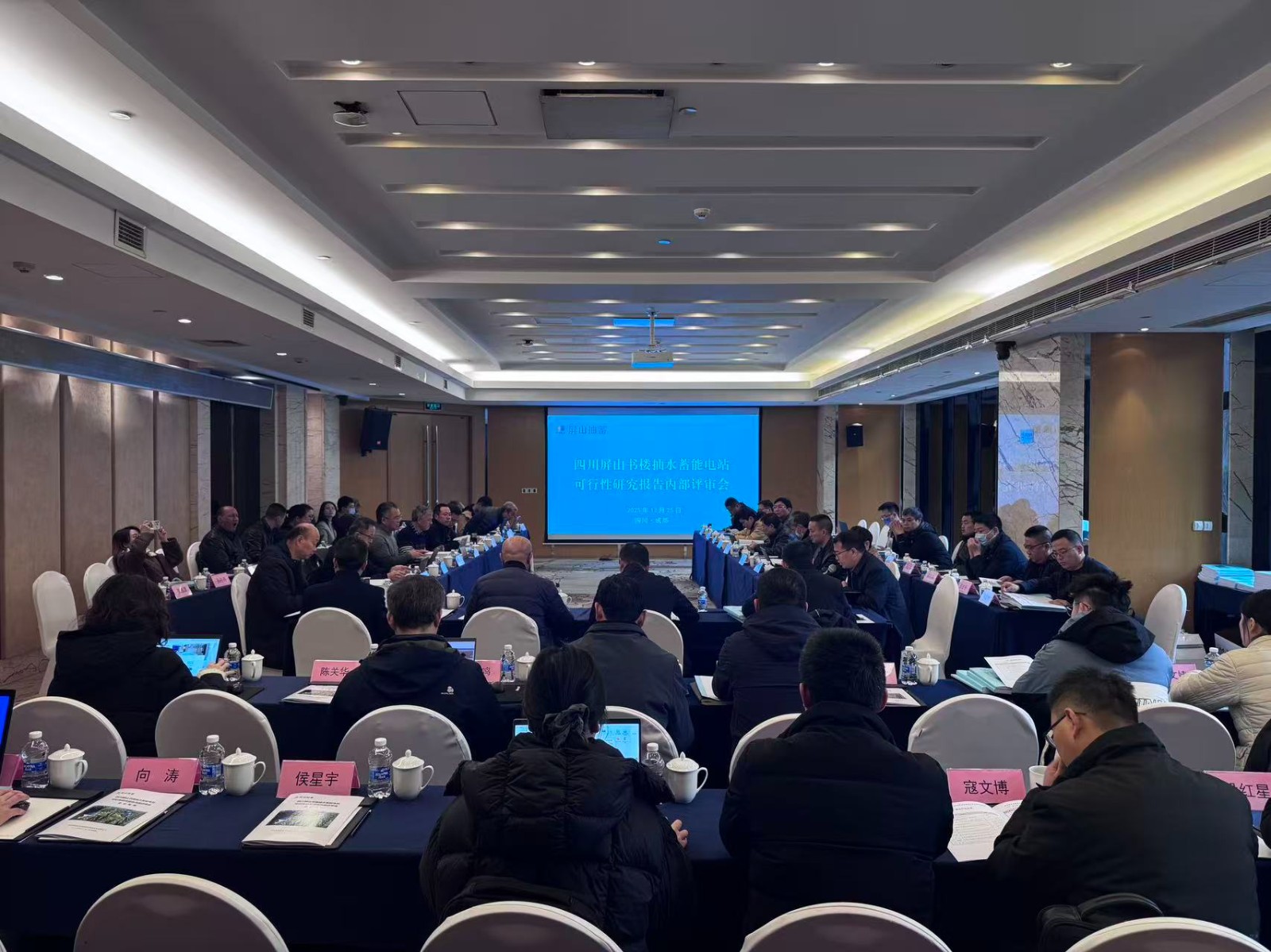 12月24日至25日,《四川屏山書樓抽水蓄能電站可行性研究報告》內(nèi)部評審會在成都召開,會議由屏山抽蓄公司總經(jīng)理蘇鵬主持,川投能源副總經(jīng)理、屏山抽蓄公司董事長王行仁,特邀評審專家,以及四川能源發(fā)展集團、川投能源、屏山抽蓄公司、攀新能源公司、中國電建成都院等相關人員參加會議。