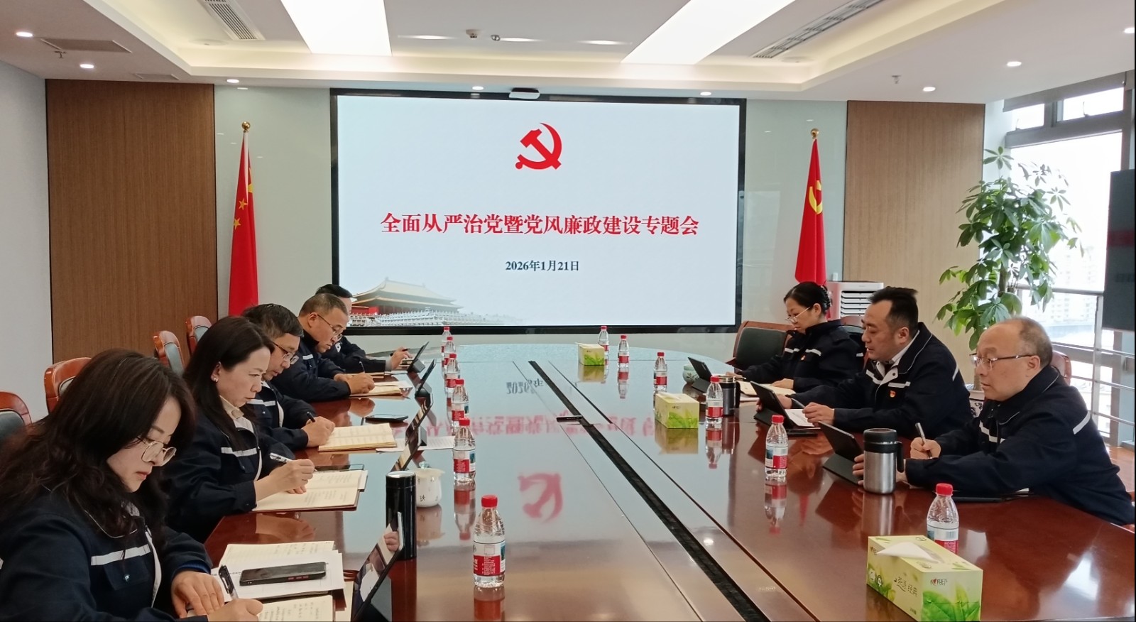 楊濤對班子成員履職工作情況進(jìn)行點(diǎn)評,結(jié)合當(dāng)前黨風(fēng)廉政建設(shè)和反腐敗斗爭的新形勢、新要求開展集體廉潔談話,他強(qiáng)調(diào)一是提升政治站位,筑牢思想根基,讀懂“一崗雙責(zé)”的分量與意義。作為“關(guān)鍵少數(shù)”,要深刻認(rèn)識(shí)到,提升政治站位是履行好“一崗雙責(zé)”的思想前提與行動(dòng)先導(dǎo),必須將管黨治黨與推動(dòng)發(fā)展的雙重責(zé)任真正扛在肩上、落到實(shí)處,做到權(quán)力與責(zé)任共擔(dān)、業(yè)務(wù)與廉政并行,以實(shí)際行動(dòng)守護(hù)個(gè)人政治生命,維護(hù)公司風(fēng)清氣正的良好政治生態(tài)。二是錨定主責(zé)主業(yè),筑牢擔(dān)當(dāng)之基,讓“一崗雙責(zé)”從要求變行動(dòng)。聚焦重點(diǎn)領(lǐng)域,細(xì)化“一崗雙責(zé)”,確保廉政建設(shè)要求深度融入生產(chǎn)經(jīng)營、招標(biāo)采購、選人用人等關(guān)鍵環(huán)節(jié),特別是設(shè)備檢修維護(hù)集中期、集控中心及智慧水電平臺(tái)建設(shè)、南江抽蓄項(xiàng)目推進(jìn)、新項(xiàng)目拓展等當(dāng)前重點(diǎn)工作。領(lǐng)導(dǎo)班子要帶頭表率,層層分解壓實(shí)責(zé)任,形成“一級(jí)抓一級(jí)、層層抓落實(shí)”的工作格局。各級(jí)紀(jì)檢組織要切實(shí)履行常態(tài)化監(jiān)督檢查及精準(zhǔn)化執(zhí)紀(jì)問責(zé),確保“一崗雙責(zé)”要求不折不扣落到實(shí)處。三是持續(xù)整治強(qiáng)作風(fēng),筑牢紀(jì)律堤壩,把廉潔自律刻進(jìn)骨子里。要將紀(jì)律挺在前面,以身作則,帶頭嚴(yán)格執(zhí)行中央八項(xiàng)規(guī)定精神,堅(jiān)決抵制形式主義、官僚主義等“四風(fēng)”問題;帶頭弘揚(yáng)艱苦奮斗、勤儉節(jié)約的優(yōu)良作風(fēng),做到廉潔齊家、從嚴(yán)治企,以良好家風(fēng)涵養(yǎng)清正黨風(fēng)政風(fēng)。四是用好警示教育“活教材”,筑牢廉潔防線,以零容忍態(tài)度深化監(jiān)督執(zhí)紀(jì)問責(zé)。大家務(wù)必以身邊案例為鏡鑒,深刻剖析根源,真正汲取教訓(xùn),時(shí)刻繃緊廉潔自律之弦,自覺對照黨紀(jì)檢視言行,主動(dòng)接受各方面監(jiān)督,習(xí)慣在“聚光燈”下用權(quán),確保權(quán)力陽光運(yùn)行。
