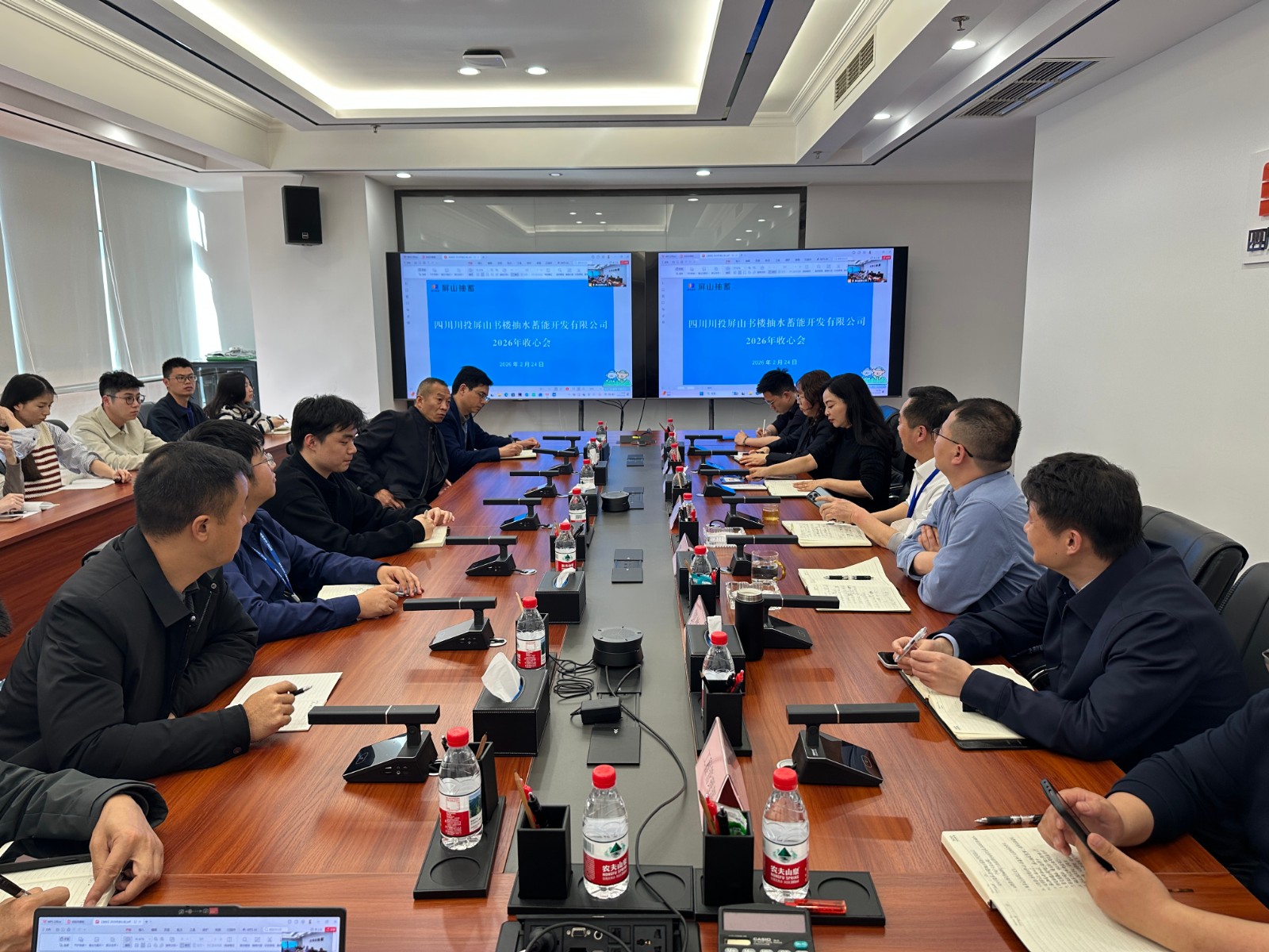 2月24日,屏山抽蓄公司召開2026年收心會,公司董事長王行仁出席會議并講話,公司領導班子及全體員工參加會議。
