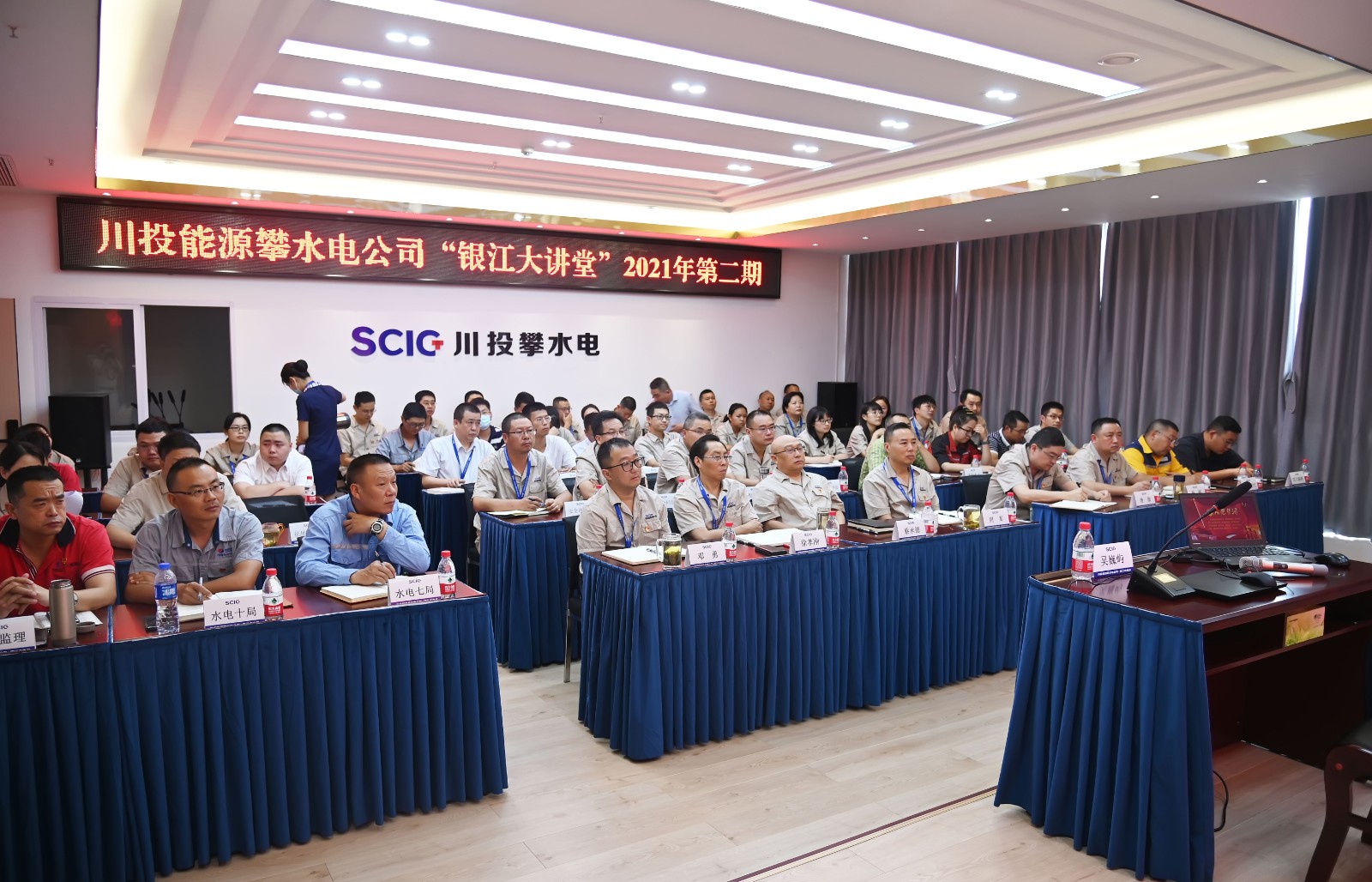 自川投能源攀水電公司“銀江大講堂”開講以來,一直受到了公司員工和各參建單位的廣大歡迎。為持續開展好“銀江大講堂”活動,近日結合黨史學習教育主題,開辦了黨史學習教育專場。黨員干部學習積極性高漲,公司全體員工及各參建單位黨員代表共40余人參加。