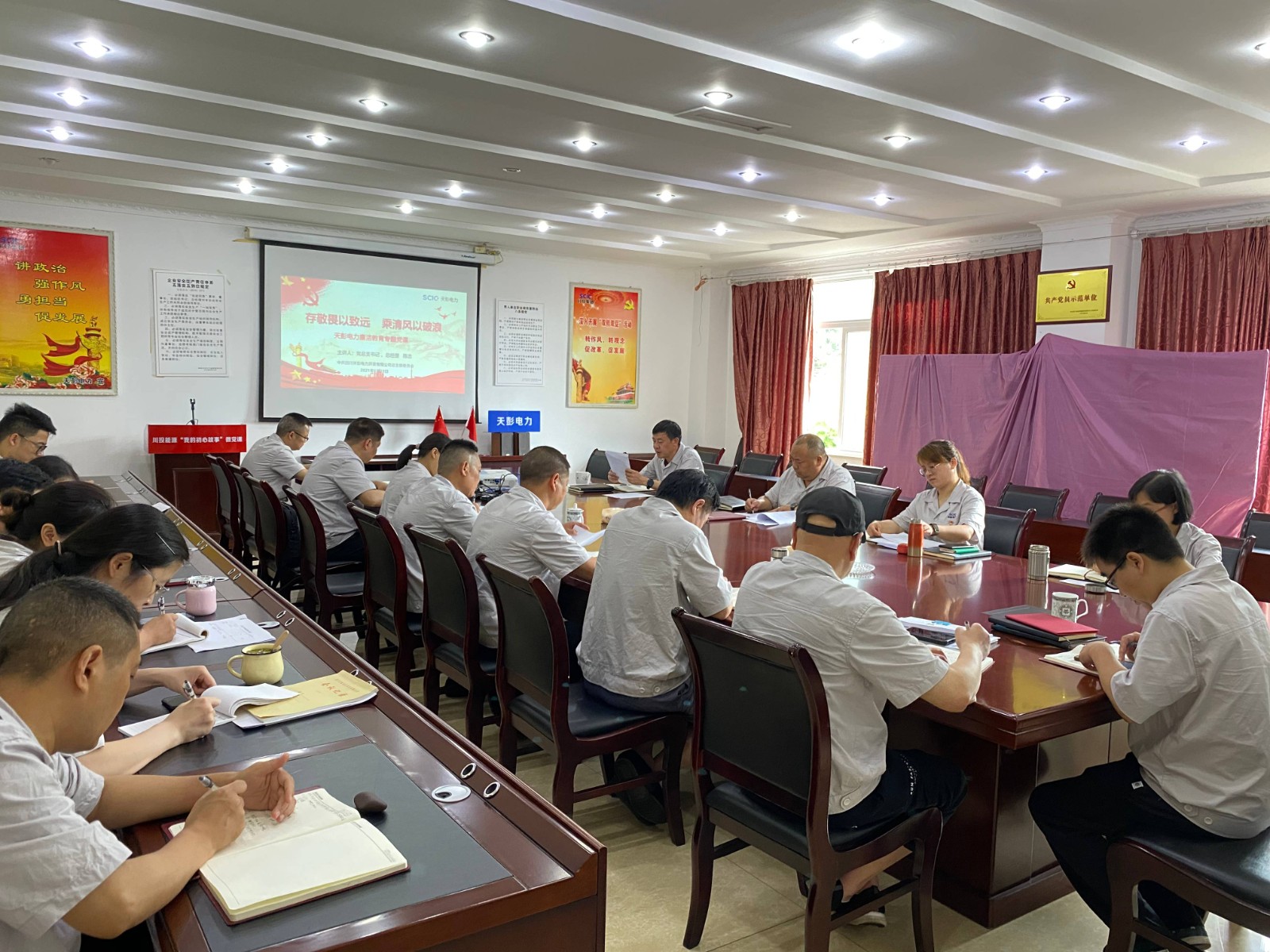為持之以恒用習(xí)近平新時(shí)代中國(guó)特色社會(huì)主義思想武裝黨員、教育干部、指導(dǎo)工作,認(rèn)真落實(shí)新形勢(shì)下全面從嚴(yán)治黨新部署新要求,馳而不息糾治“四風(fēng)”,6 月29日,川投能源天彭電力召開(kāi)慶“七·一”專題廉潔黨課暨廉潔警示教育會(huì)。