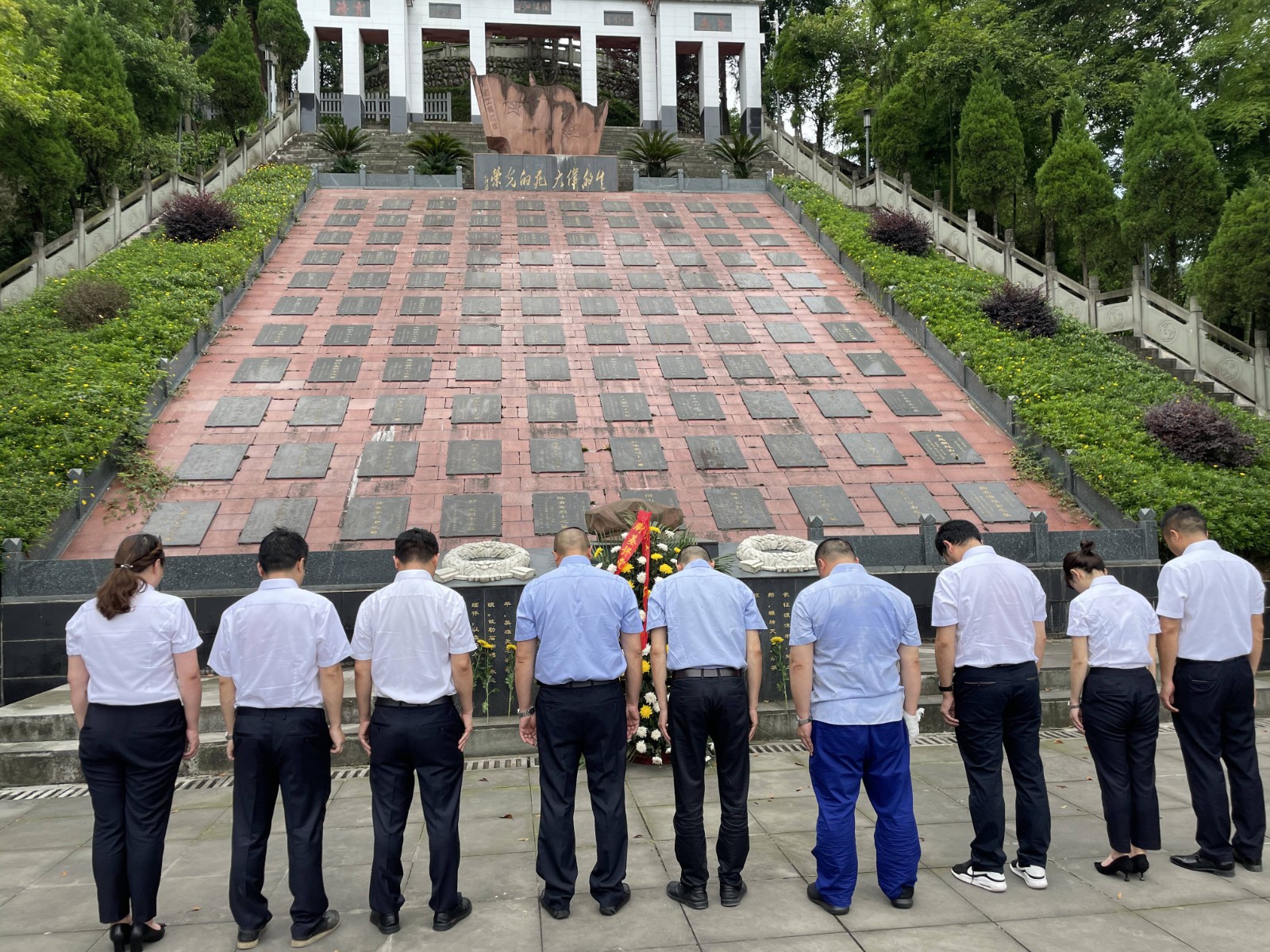 儀式后,全體黨員參觀了烈士陵園。烈士陵園內,松柏蒼翠挺拔,烈士紀念碑巍然聳立,氣氛莊嚴肅穆。天全縣烈士陵園,是為了紀念1935年10月7日至1936年2月15日中央紅軍在天全白土坎犧牲的紅軍烈士而修建的,共有316名先烈長眠于此。在300名英烈群墓旁就是修建二郎山公路時犧牲的16民烈士的公墓,二郎山隧道曾是千里川藏公路上的第一道咽喉險關,素有“千里川藏線,天塹二郎山”之說,硬生生開鑿出一條道路,也付出了慘痛的代價,平均每公里就要犧牲七名戰士。