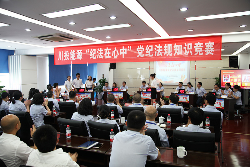 激情七月蓮花香,紀(jì)法銘記享安康。7月25日,由川投能源紀(jì)委主辦、交大光芒黨總支承辦的川投能源“紀(jì)法在心中”黨紀(jì)法規(guī)知識(shí)競(jìng)賽在交大光芒生產(chǎn)基地會(huì)議室隆重舉行。集團(tuán)公司紀(jì)檢監(jiān)察部趙艷到會(huì)指導(dǎo),川投能源領(lǐng)導(dǎo)班子成員、所屬企業(yè)黨政一把手、川投能源本部全體黨員和交大光芒部分黨員代表等共計(jì)50余人到現(xiàn)場(chǎng)觀看了知識(shí)競(jìng)賽。川能源本部機(jī)關(guān)三個(gè)支部、所屬企業(yè)天彭電力、交大光芒等五個(gè)代表隊(duì)參加了紀(jì)法知識(shí)競(jìng)賽。舉辦此次競(jìng)賽活動(dòng),旨在促進(jìn)全體黨員干部自覺(jué)以習(xí)近平新時(shí)代中國(guó)特色社會(huì)主義思想統(tǒng)領(lǐng)企業(yè)改革發(fā)展工作,用中央和省委最新決策部署引領(lǐng)思想行動(dòng),用黨紀(jì)條規(guī)規(guī)范廉潔從業(yè)行為,為川投能源健康可持續(xù)發(fā)展提供堅(jiān)強(qiáng)的政治紀(jì)律保障。