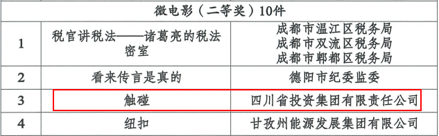 近日,中共四川省委宣傳部公布了2024年四川省社會主義核心價值觀主題微電影(微視頻)作品征集活動優秀作品名單。由川投集團推薦報送的川投能源微電影《觸碰》榮獲2024年四川省社會主義核心價值觀主題微電影二等獎。