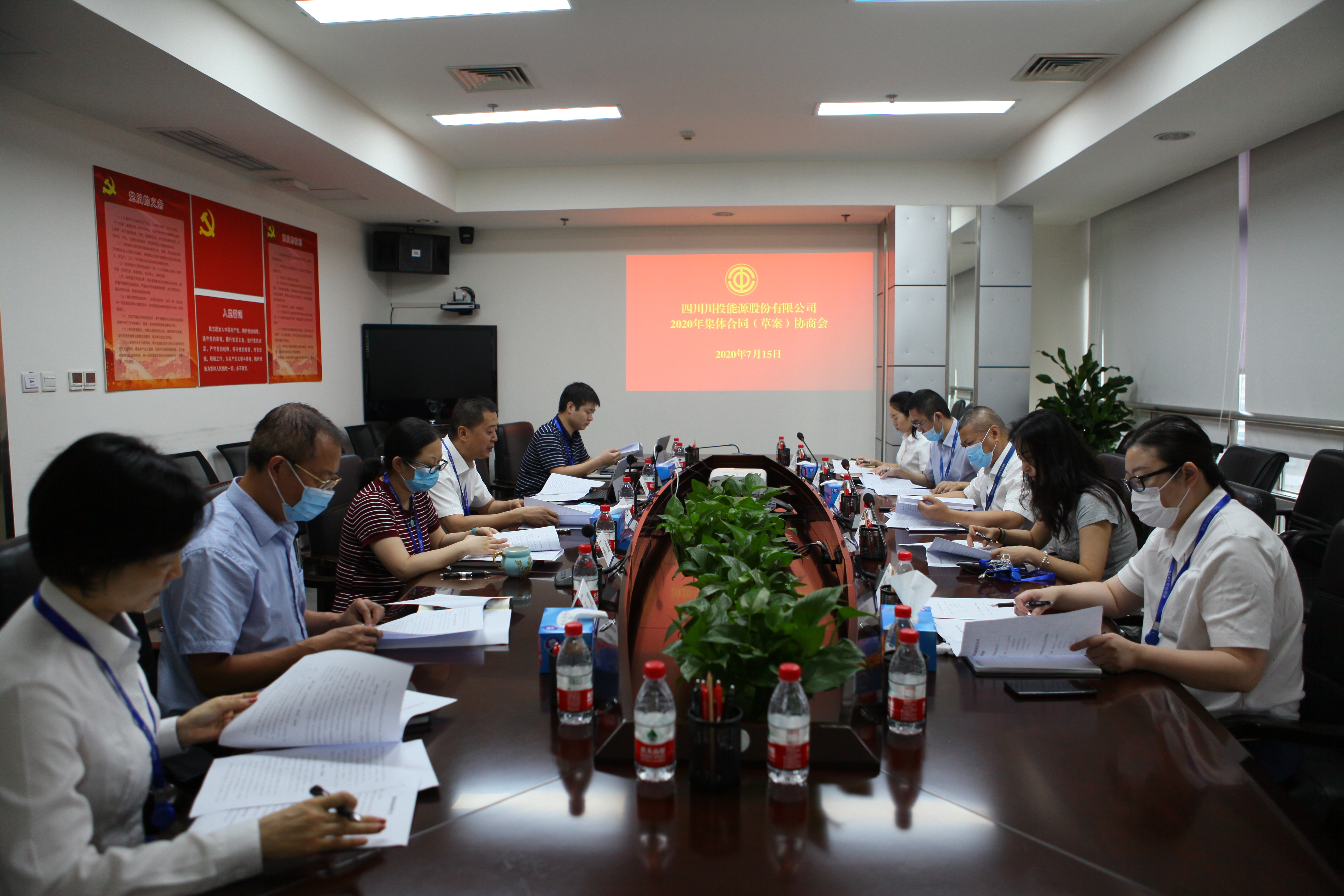 近日,川投能源集體協商行政方代表和職工方代表在川投大廈603會議室召開2020年公司集體合同(草案)協商會。工會方5名代表由職工大會選舉產生,企業方5名代表由公司黨委書記、副董事長、總經理楊洪及四個部門負責人組成。會議由職工方首席代表、公司黨委副書記、工會主席楊超龍主持。
